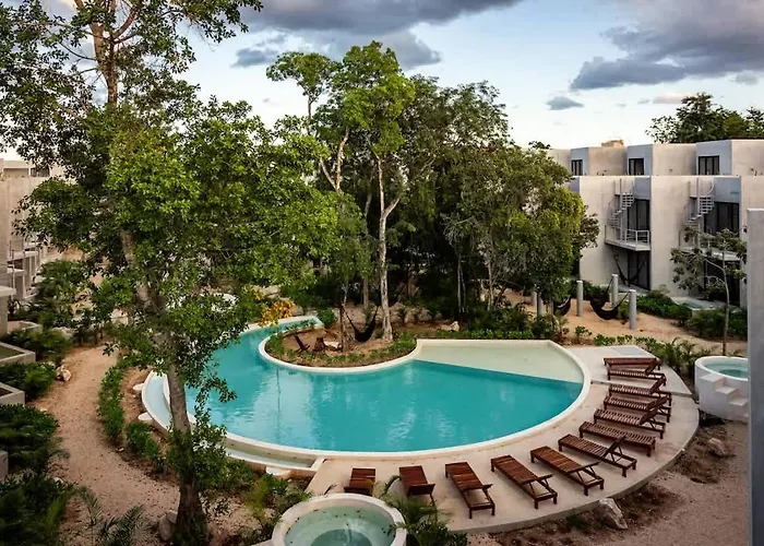 Located in the La Veleta district, the 2-bedroom Refugio En La Selva Villa Tulum is 2.8 miles from Tulum Archaeological Site and offers a Jacuzzi bathtub and a hot tub.